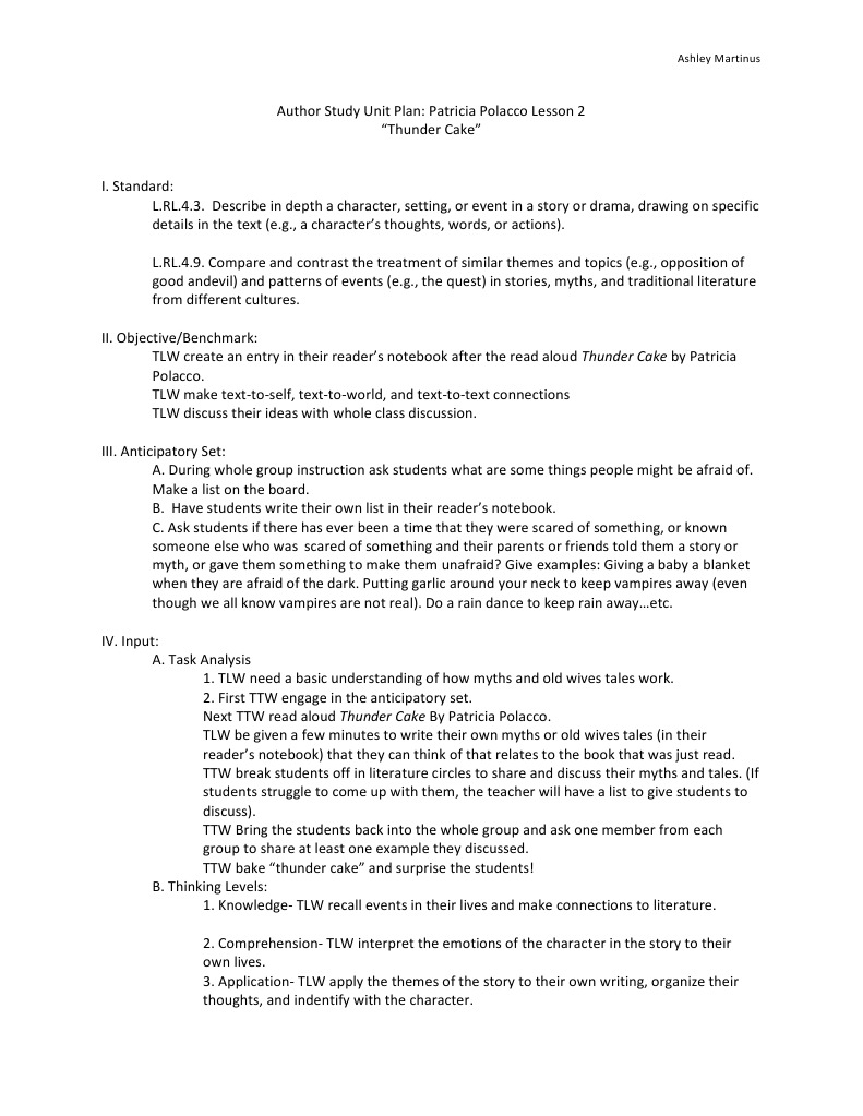 Patricia Polacco Thunder Cake Teaching Resources Tpt